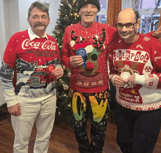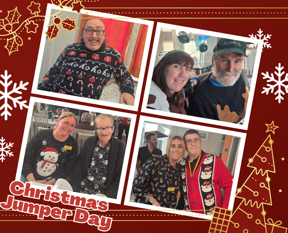 On 11th December we celebrated Christmas Jumper Day. All the residents, staff and family members were invited to put on a Christmas Jumper or T-shirt and take part in the competition. We had 2 family members that picked 1st, 2nd and 3rd place for the residents and they received a small prize.